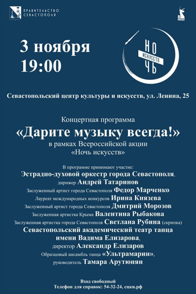 3 ноября в 19:00 в Севастопольском центре культуры и искусств состоится концерт в рамках всероссийской акции «Ночь искусств»!