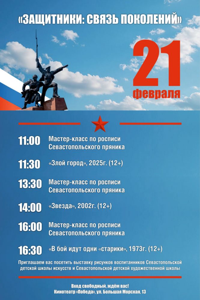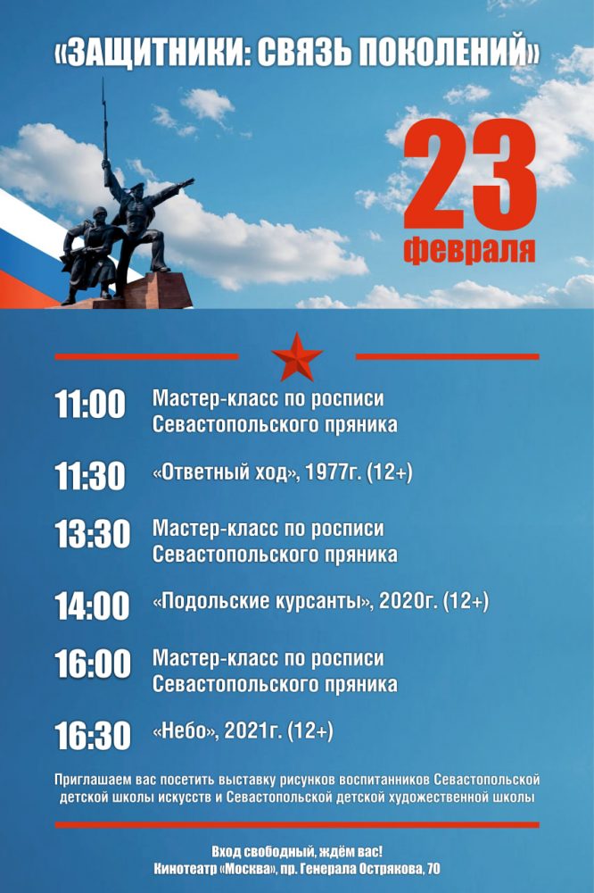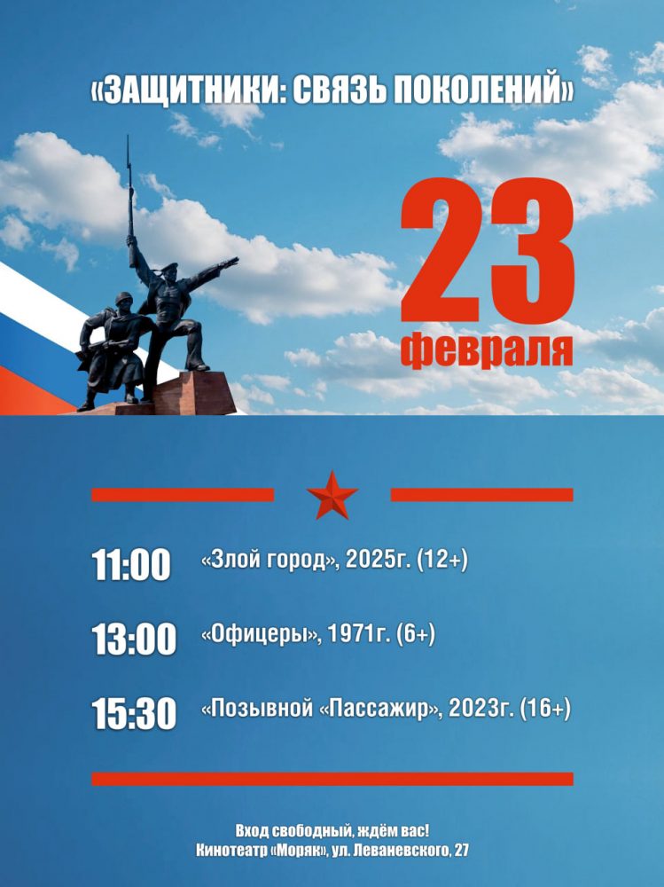 К Дню защитника Отечества в кинотеатрах «Москва», «Победа» и «Моряк» пройдет киномарафон «Защитники: связь поколений».