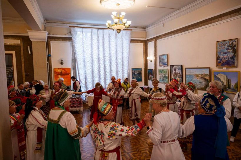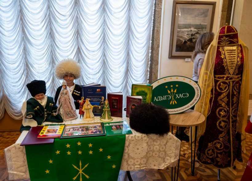 В фойе гостей встречала выставка национально-культурных обществ Севастополя.