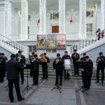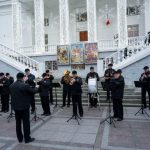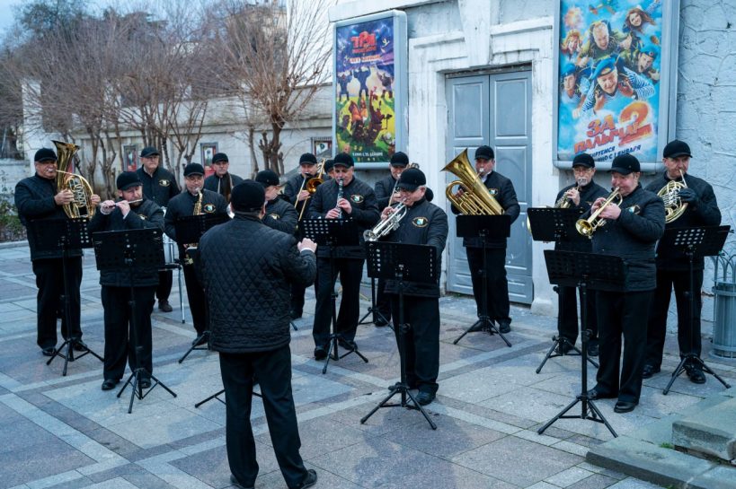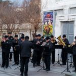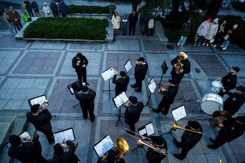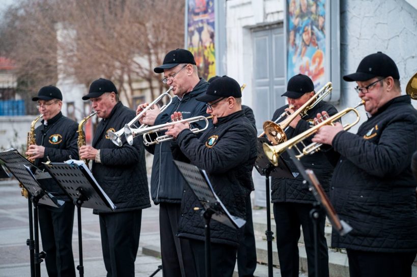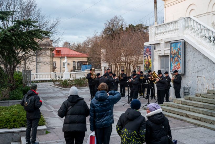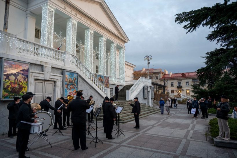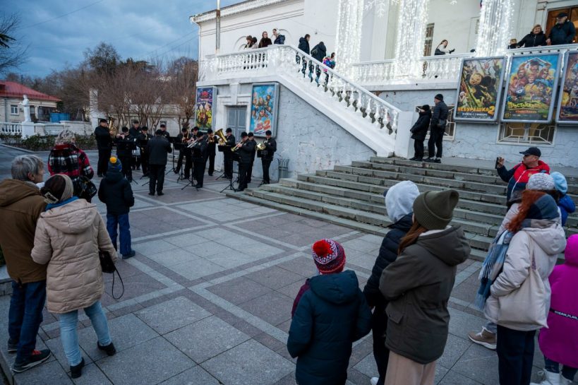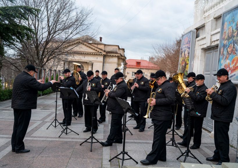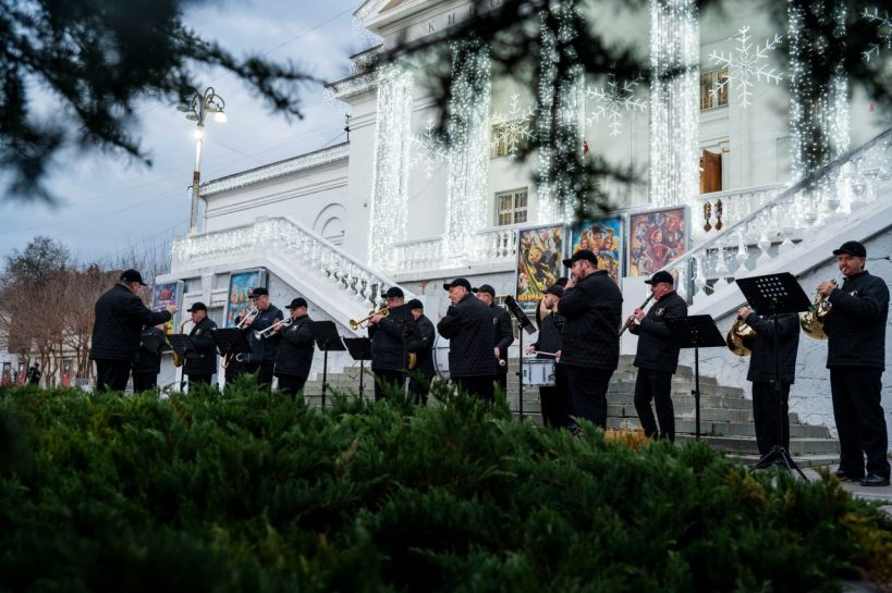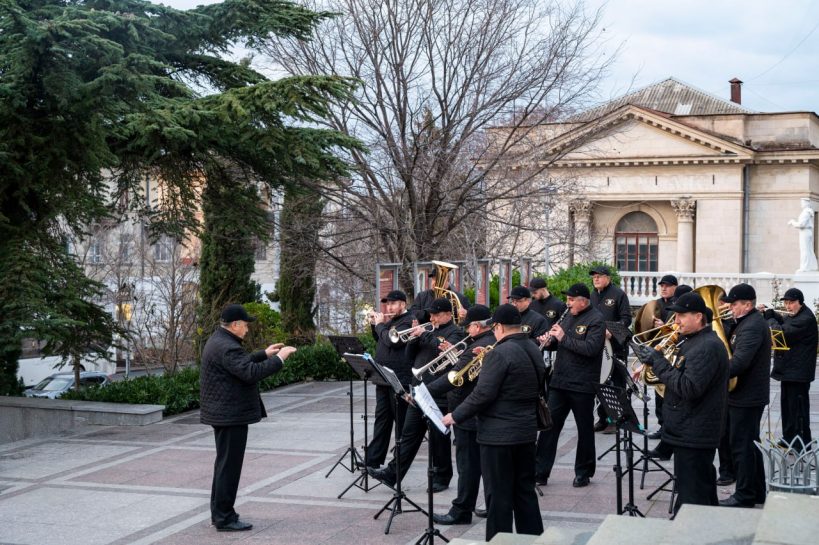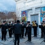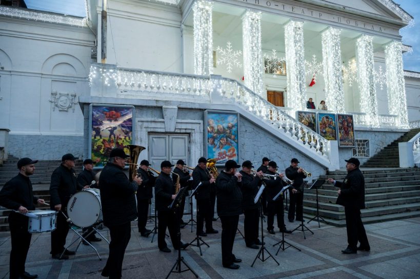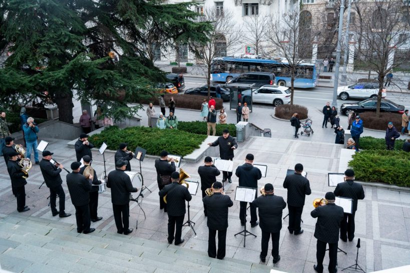 С 3 по 7 января в рамках новогодних и рождественских каникул у кинотеатра «Победа» прошли выступления эстрадно-духового оркестра города Севастополя.