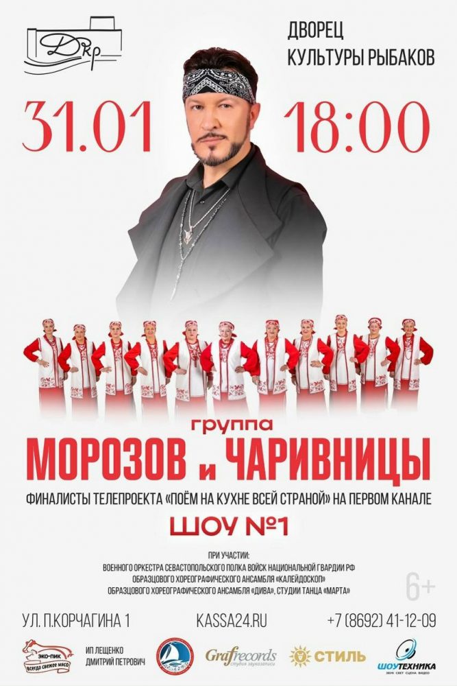 Приглашаем вас на шоу, посвящённое 10-летию совместной творческой деятельности заслуженного артиста Севастополя Дмитрия Морозова и вокального коллектива «Чаривницы»!