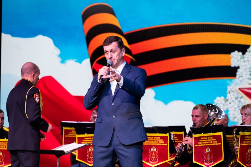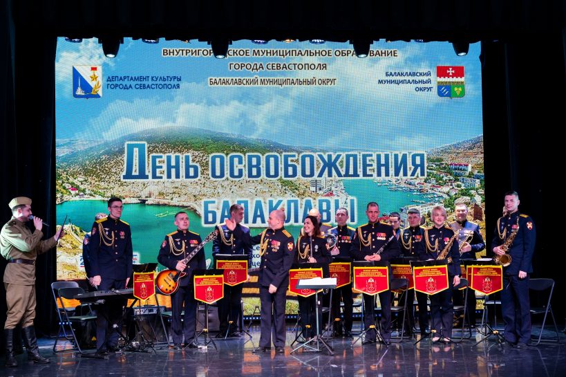 На сцене выступили Военный оркестр Севастопольского полка войск Национальной гвардии Российской Федерации (начальник оркестра — военный дирижер, заслуженный артист города Севастополя, майор Валентин Таев), заслуженная артистка России Анна Масорина, учащиеся Севастопольской школы искусств – ансамбль “Новый Херсонес”, а также Роман Щеголь — артист ансамбля песни и пляски Черноморского флота.