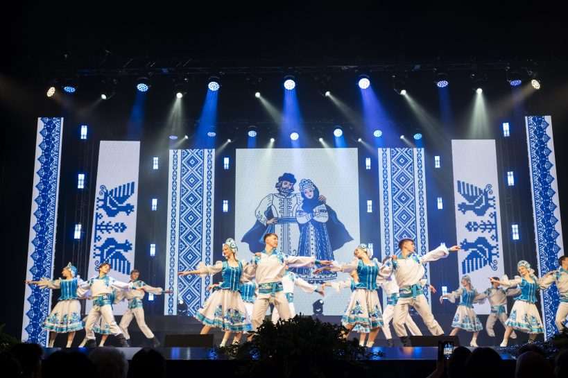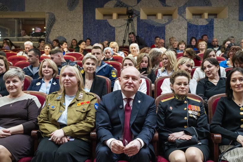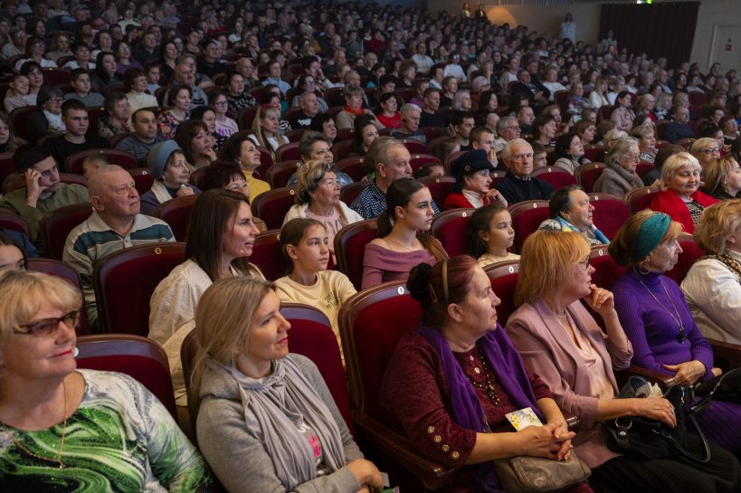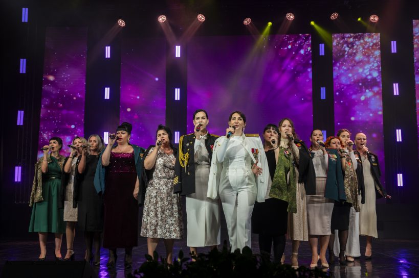 На сцене блистали лучшие артисты и творческие коллективы города, даря зрителям незабываемые эмоции. Трогательный момент вечера – на сцену вышли жёны наших Героев в кителях своих мужей. Вместе с ансамблем «Галатея» они исполнили песню «Любовь побеждает всё».